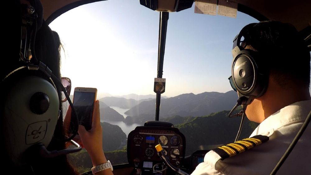 来自上海的一家三口选择了H线(湖区线),在空中观赏千岛湖核心景区的时候,非常自豪地说“你看这么多的车子和游客堵在下面,而他们五小时才能走遍的地方,我们空中几十分钟就全看到了”。