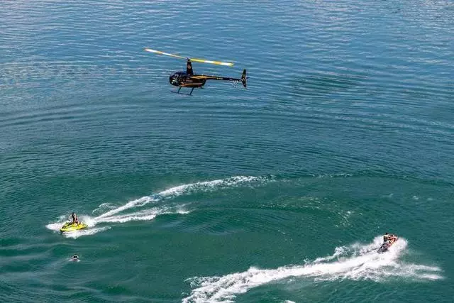 7月30日上午10点,随着一架黑金涂装的罗宾逊R44直升机在千岛湖畔载着游客腾空而起,低空旅游+直升机跳水(HELI-DIVING)项目在建德精彩亮相。