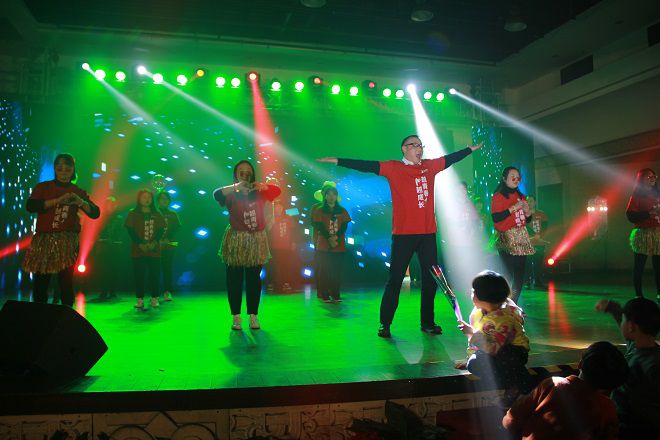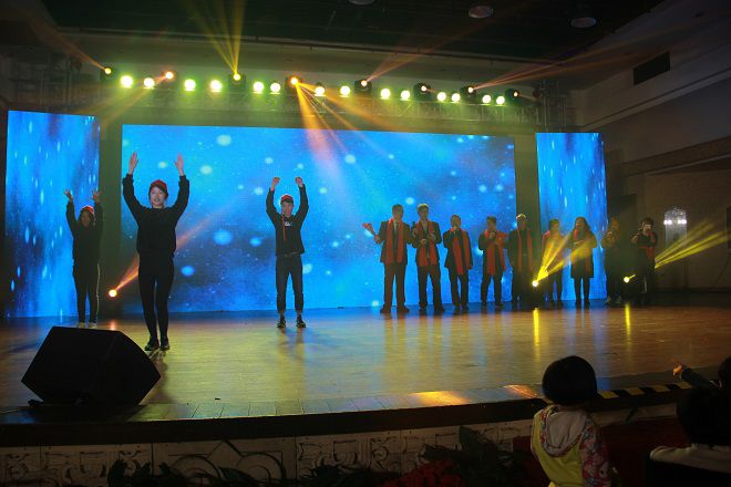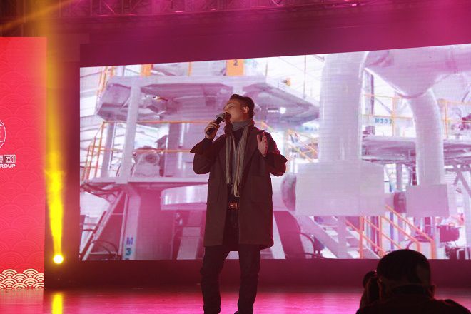 集团高层领导合唱真心英雄,把新春团拜会推向高潮!