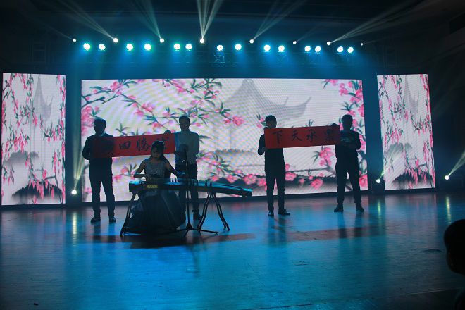 通信板块员工 陶筱丹等表演古筝弹奏:《渔舟唱晚》