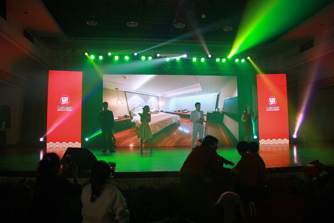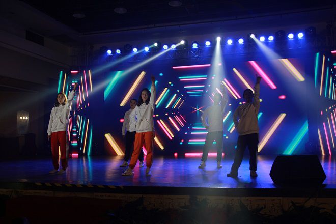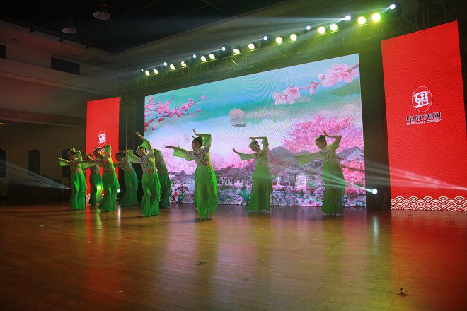 紫金城建员工正在表演舞蹈《芙蓉雨》