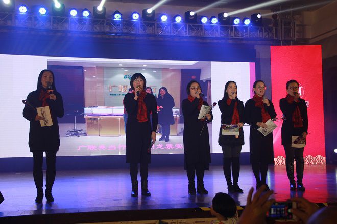 广联典当和广龙实业的员工珠联璧合表演歌舞《海阔天空》