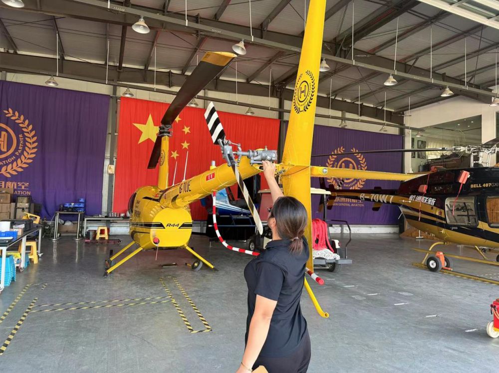 面对炎炎夏日,烈日当头时候,人们都会躲在阴凉处,但你会看见新联通航飞行基地的停机坪上有机务人员正在给飞机做“体检”,飞行员主场是蓝天,那机务的主场就是停机坪了。飞行过后,游客和飞行员离开,他们上场了,近40℃的高温,他们钻尾梁、查桨叶、排故障,手拿扳手、解刀、抹布,大到外部清洁维修,小到一颗螺丝检查更换,每一步都严谨仔细、细致入微,虽然挥汗如雨,但从他们表情上仿佛感受不到天气的炎热,只关心飞机的机身状况及运行安全。