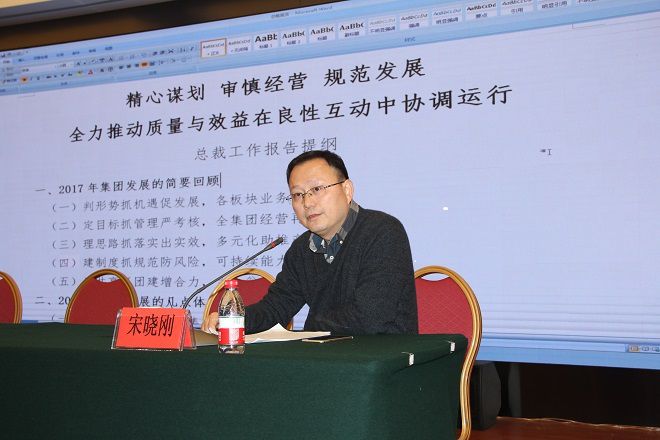 会上,集团总裁宋晓刚先生作了题为《精心谋划, 审慎经营, 规范发展,全力推动质量与效益在良性互动中协调运行》工作报告;这次会议认真总结了过去一年的发展实践,在坚持“产融结合”发展道路的基础上,围绕“精心谋划、推进创新、提升管理、规范发展”的工作思路,进一步发挥全体干部员工的主观能动性和工作积极性,激发工作热情,提升工作质量,增强工作效益,重管理、强优势、补短板、聚合力,全力推动集团公司各项业务跨上新台阶。