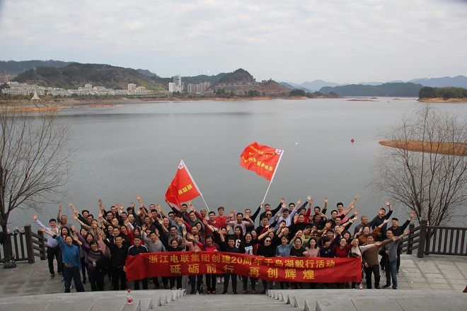 为庆祝浙江电联集团创建二十周年,集团高层领导的带领员工举行环千岛湖毅行活动